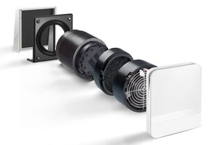 Fans in the bathroom, kitchen, WC or utility room transport the exhaust air either directly into the open air or via exhaust air shafts. The resulting slight negative pressure "pulls" fresh, filtered air through the outer wall air vents into the living and working spaces. With humidity-controlled home ventilation, a system approved by the building authorities, considerable savings can be made in ventilation heat losses. Click here for our extractors with or without heat recovery.